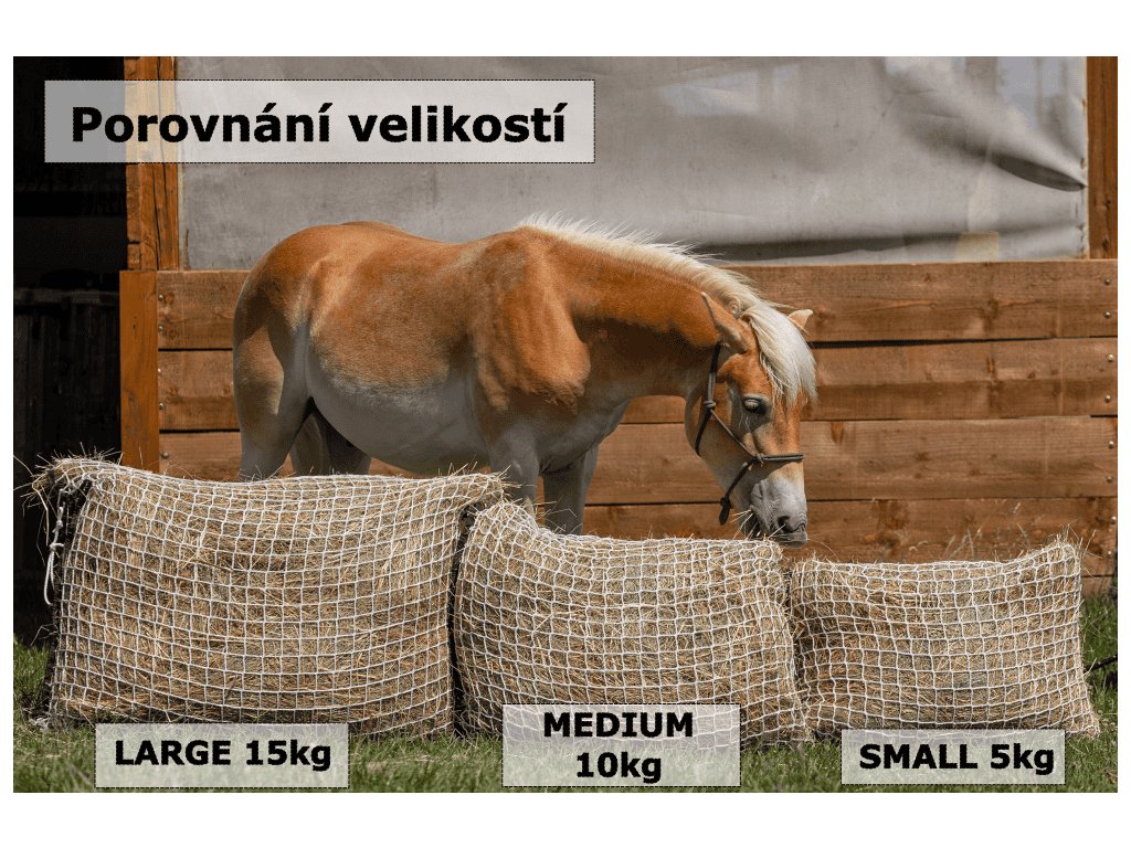 • Velká kapacita - pojme cca 15kg sena, rozměr 120x90cm,  ideální na delší krmné intervaly